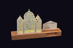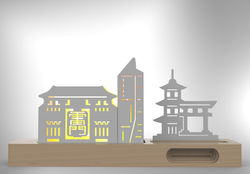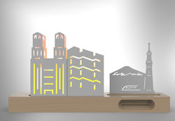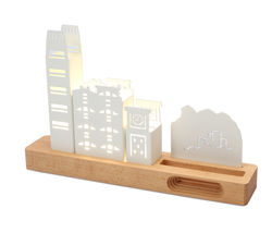 INsight’s Desktop lightings reappear distinctive buildings in different cities by using minimal lines. The material of the buildings is carbon steel. The building lines and the details are emitted by the soft warm LED lighting. The wooden base also has a phone stand and natural amplifier functions, which allows users to put their phone on it; and listen to music and relax during busy workdays. Users can also create a unique exclusive small city by building their own different blocks combination according to their preferences, which is elegance and simplicity.